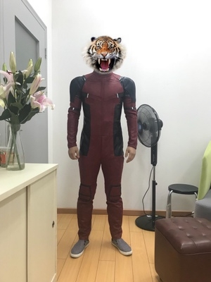 In terms of materials, this deadpool costume is the best I have ever seen. Although the leather is artificial (of course, it is obviously impossible to use real animal leather for cost reasons), but the leather feels very good, I really like the treatment of the leather surface, which makes the surface color and pattern of the costume.. like the real deadpool costume! I like it.